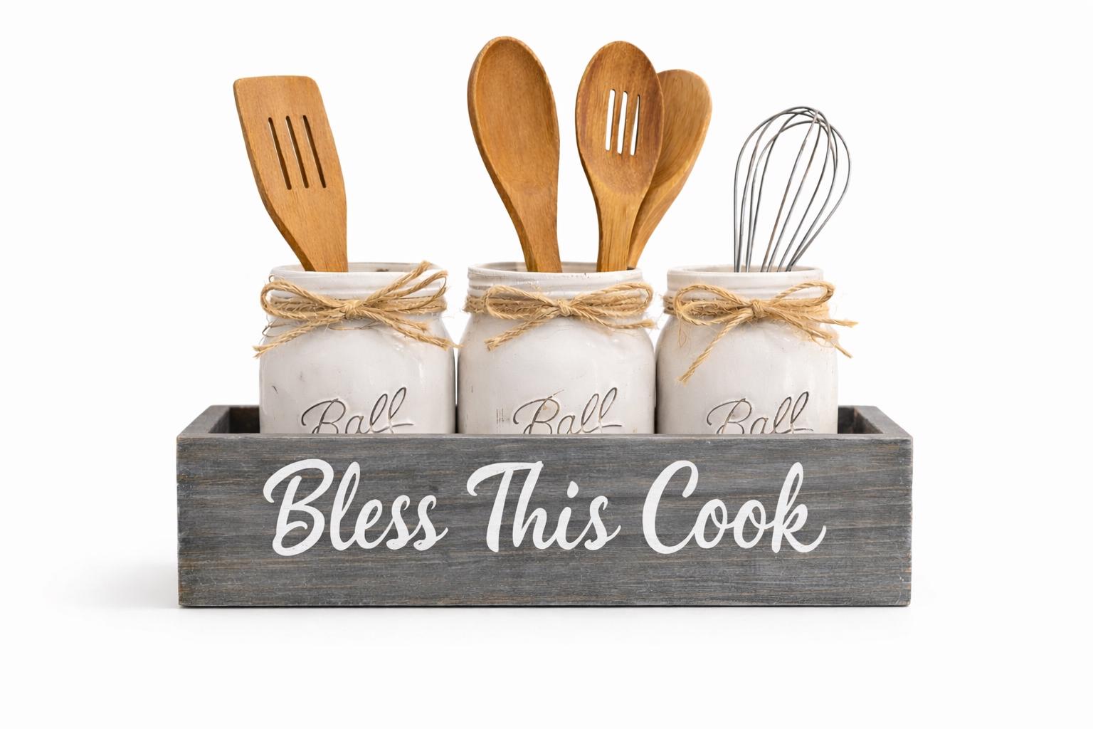 Farmhouse Mason Jar Utensil Holder – Bless This Cook