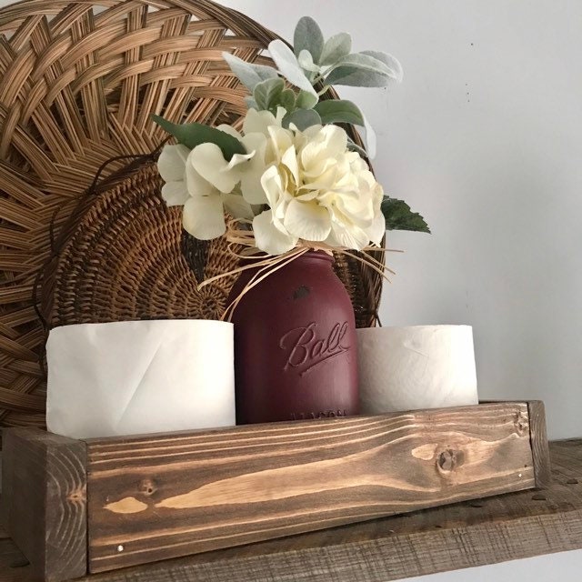 Wooden Tray For Bathroom Toilet Paper Holder with Mason Jar Bathroom Decor Bathroom Organizer Farmhouse Housewarming Gift Tissue Holder