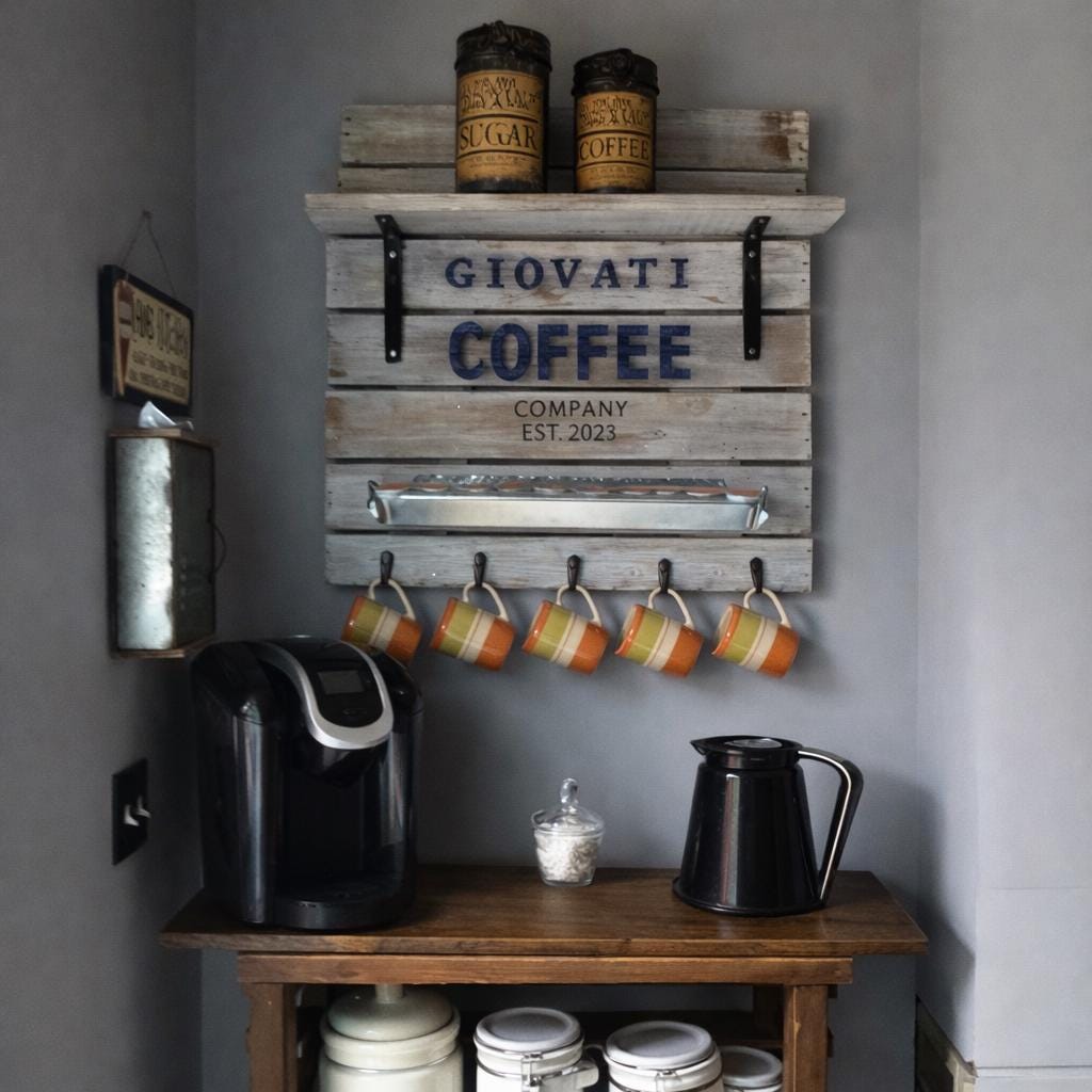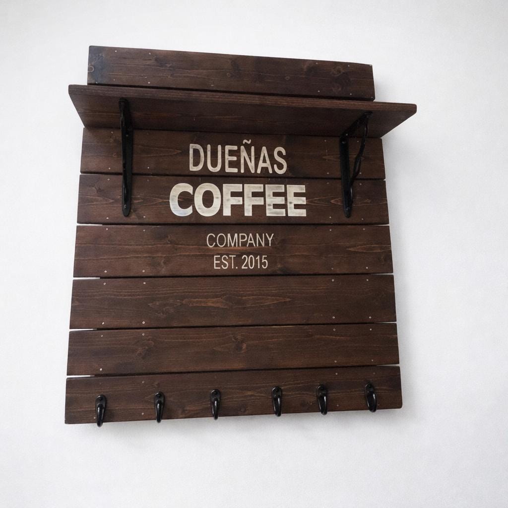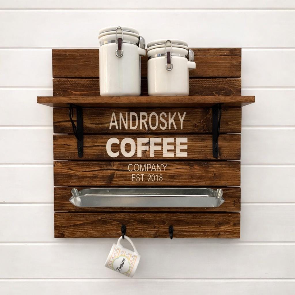 ☕ Personalized Coffee Bar Shelf with Hooks
