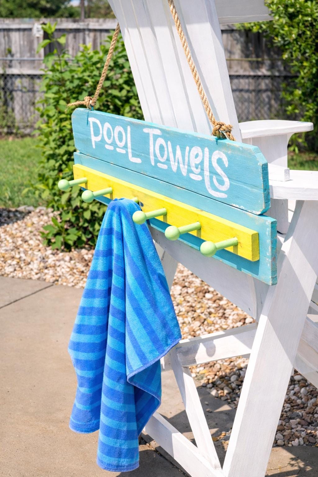 Towel rack turned out adorable! We LOVE it and is the new conversation piece by our pool. Well-constructed and just too cute!