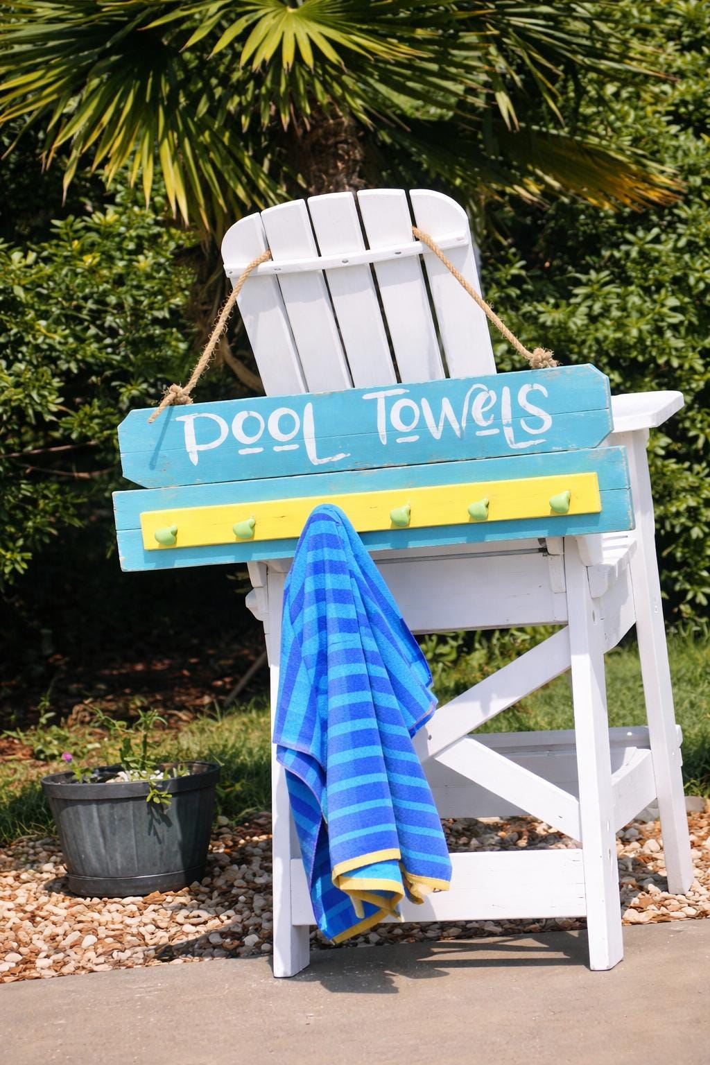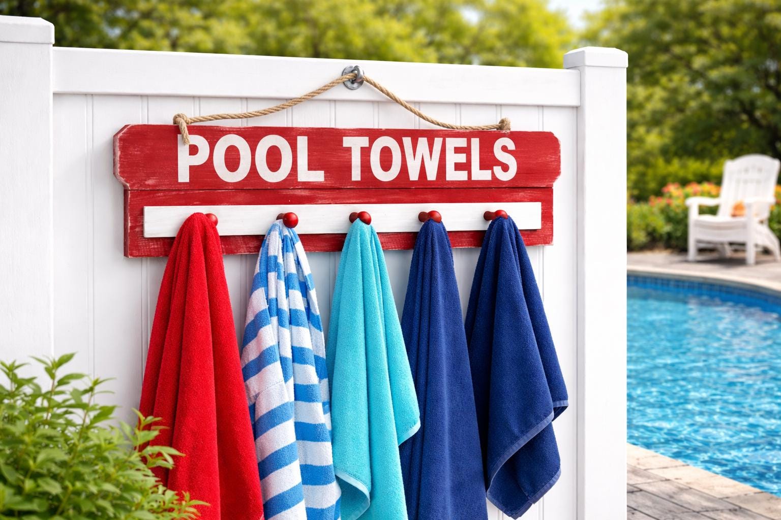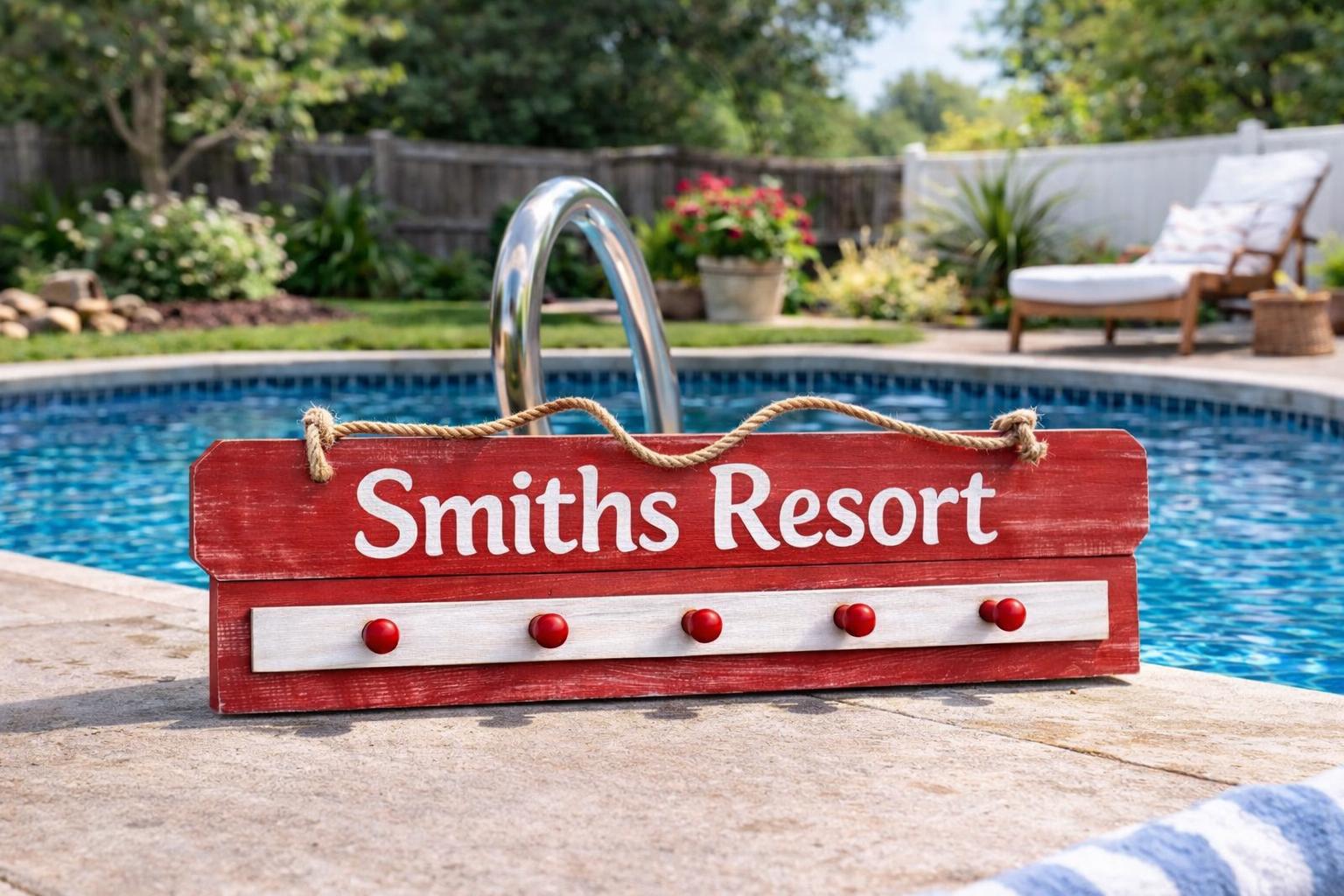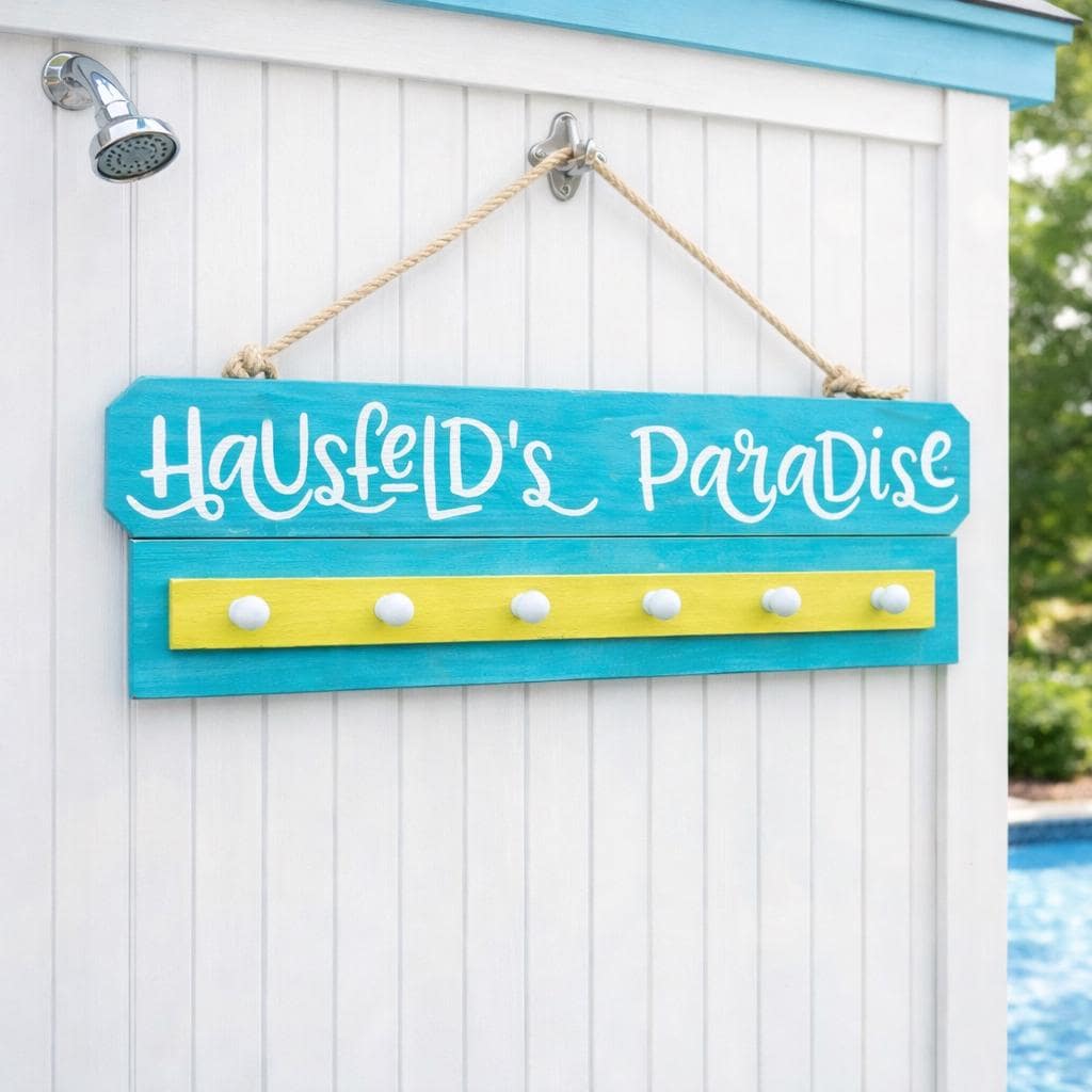 Add a stylish and functional touch to your poolside with this personalized pool towel rack—perfect for keeping towels organized while adding a custom look to your outdoor space.