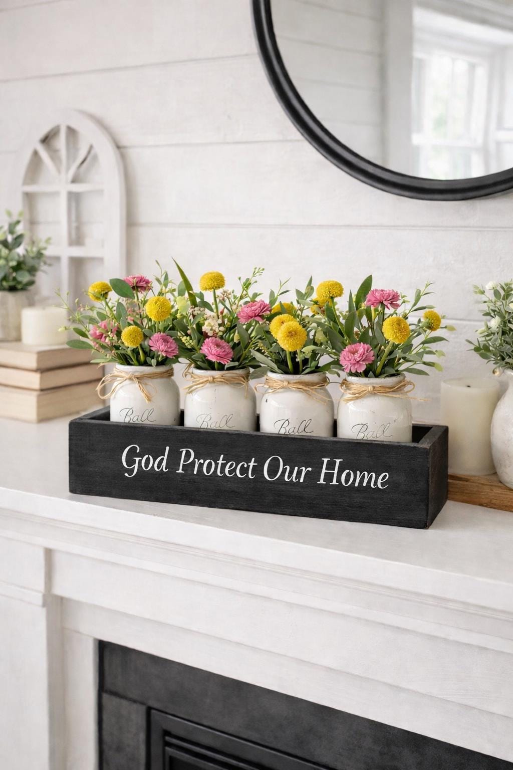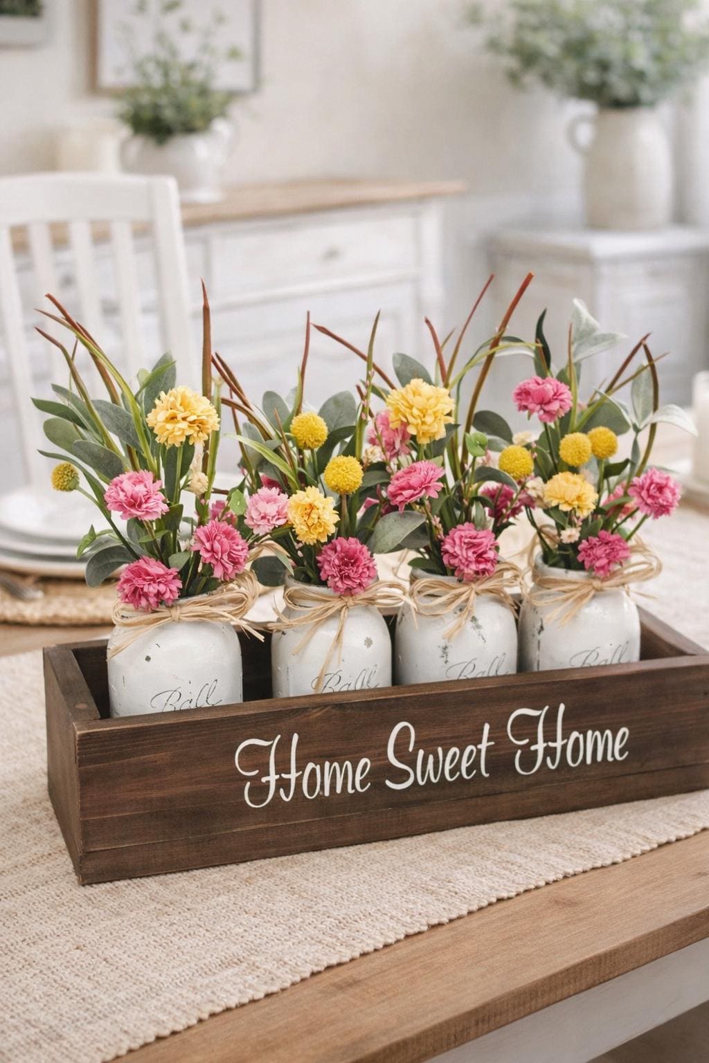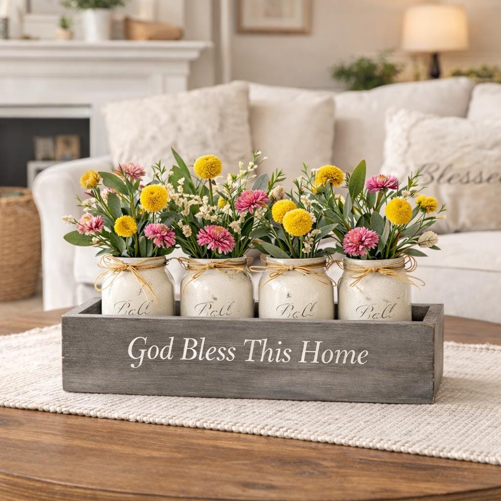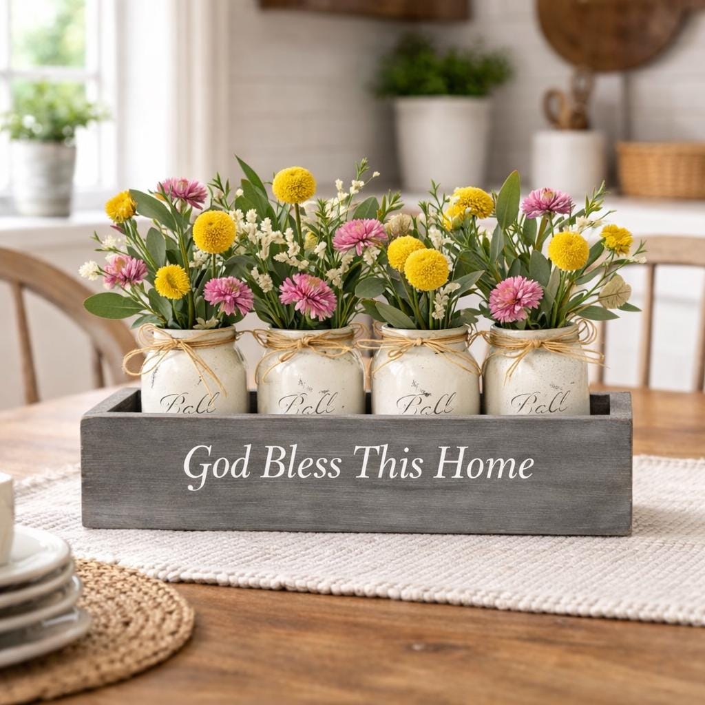 Farmhouse Mason Jar Centerpiece Box – Personalized Rustic Home Decor