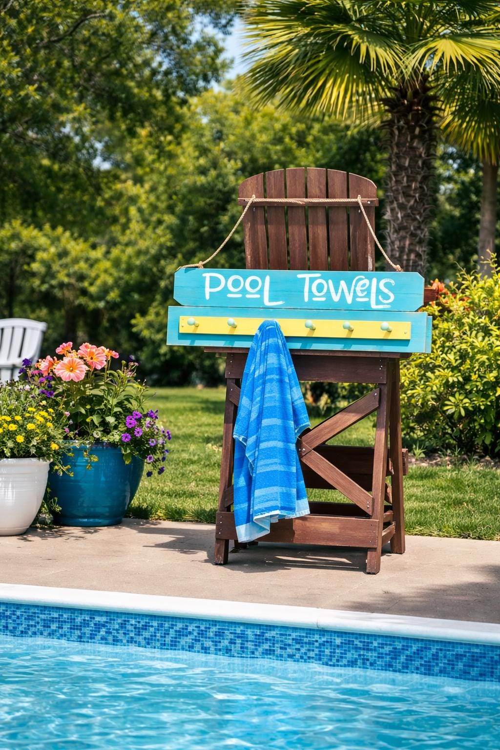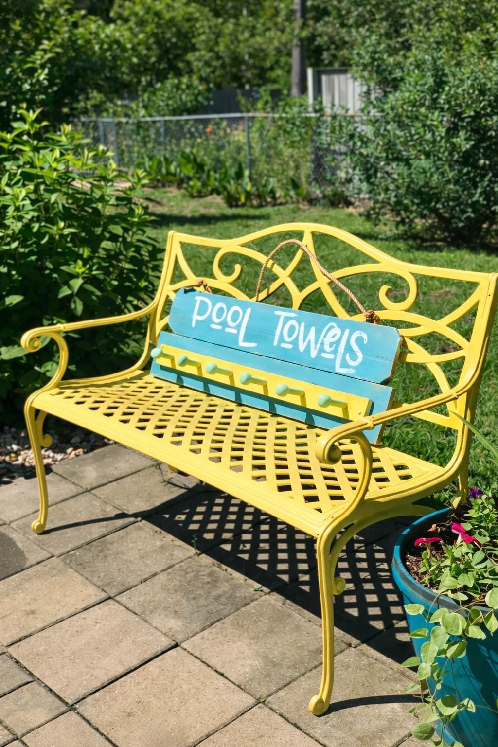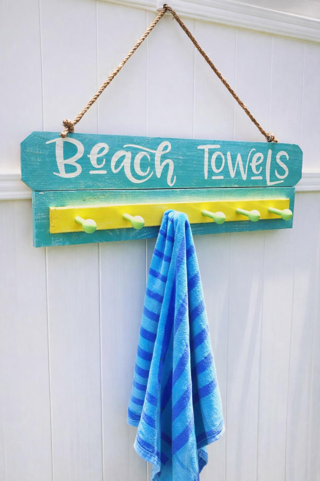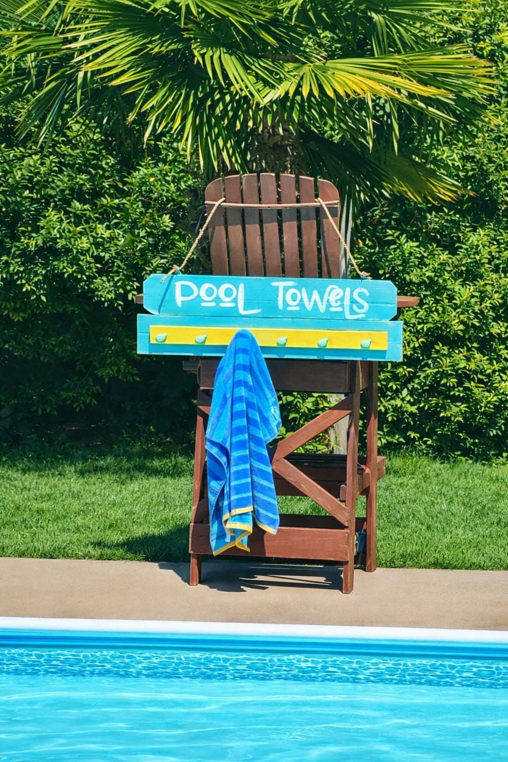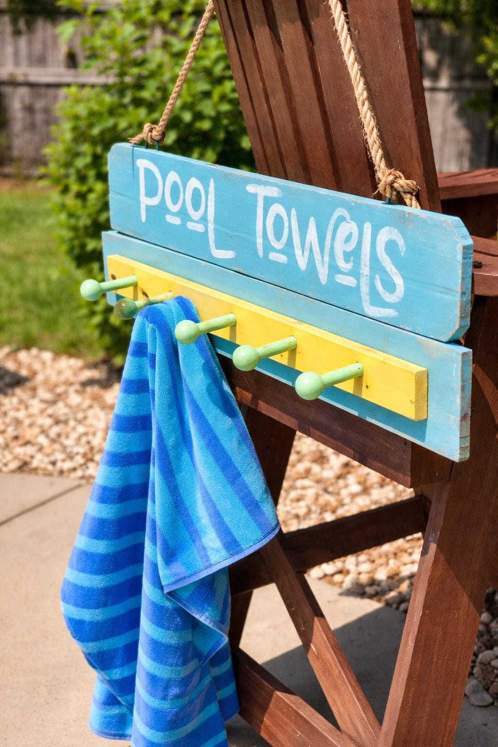 Whether you’re decorating your backyard pool, lake house, or beach house, this custom towel rack makes a statement.