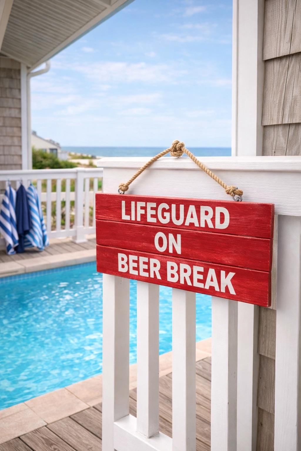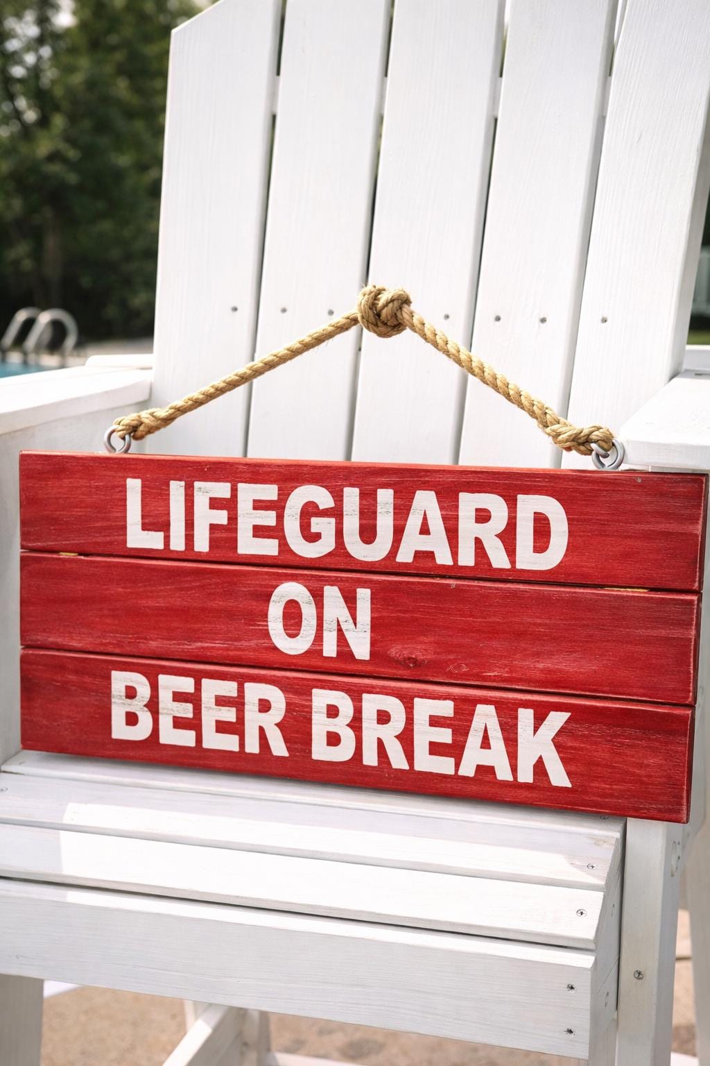 Add personality and humor to your pool area with this handmade wooden lifeguard sign — perfect for beach houses, backyard pools, pool bars, and outdoor entertaining spaces.