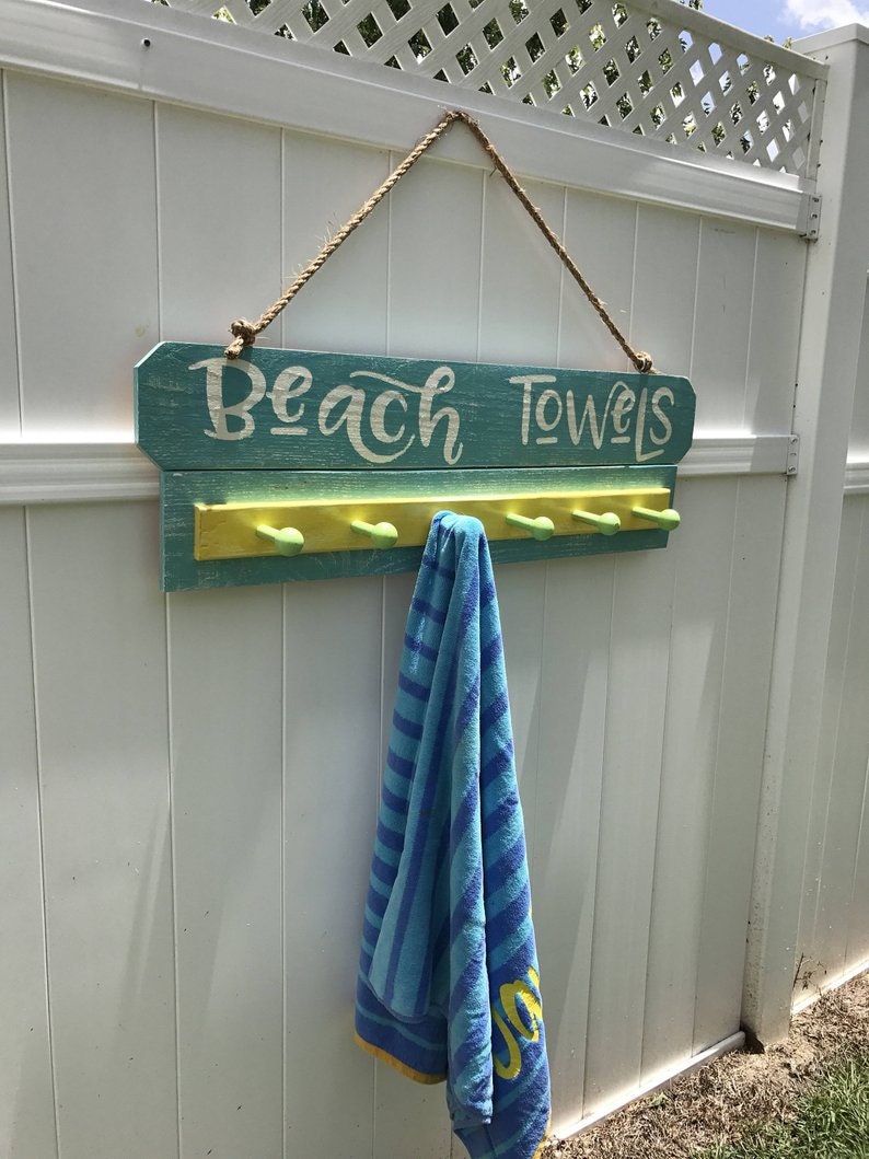Custom Pool sign summer décor Swimming pool décor or Beach House Decor is more than just a backyard sign, decorate your pool area with this hand painted rustic pool towel rack.