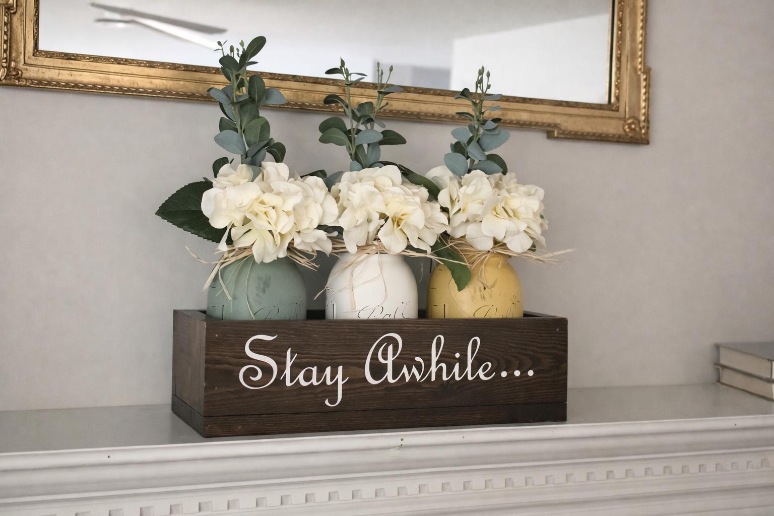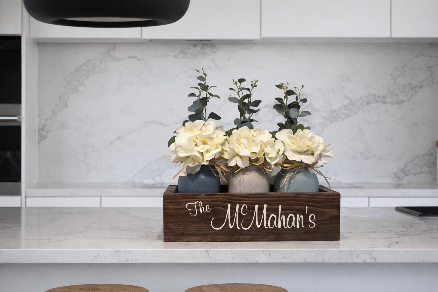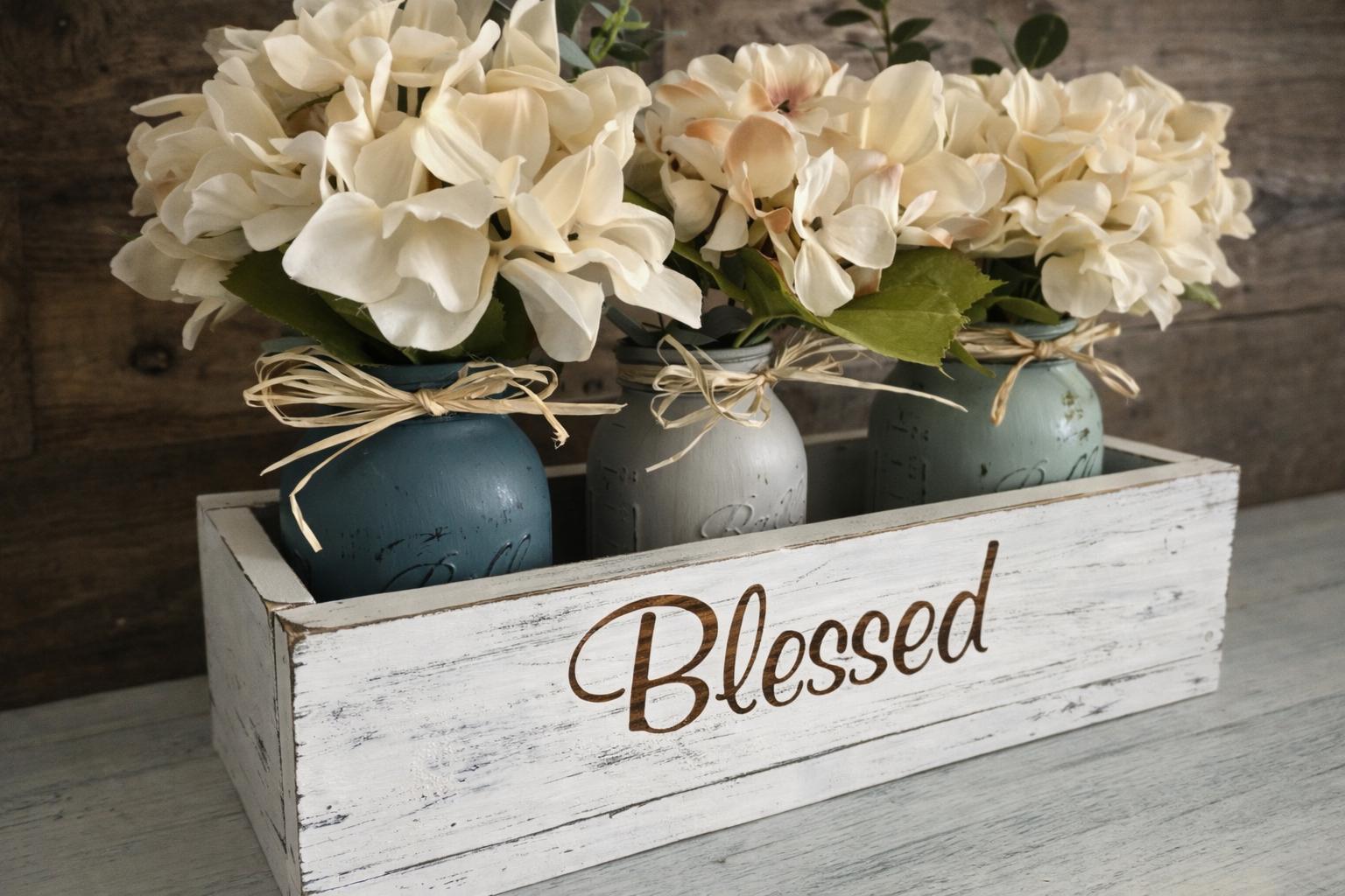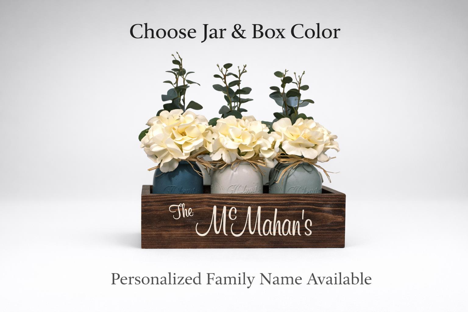 This centerpiece makes a thoughtful personalized wedding gift, anniversary gift, housewarming gift, or timeless addition to your farmhouse home décor.